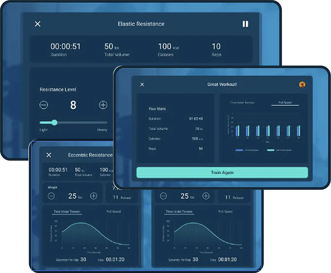 המערכת מנטרת כל חזרה ומציגה נתונים מדויקים על עוצמה, מהירות ויציבות.