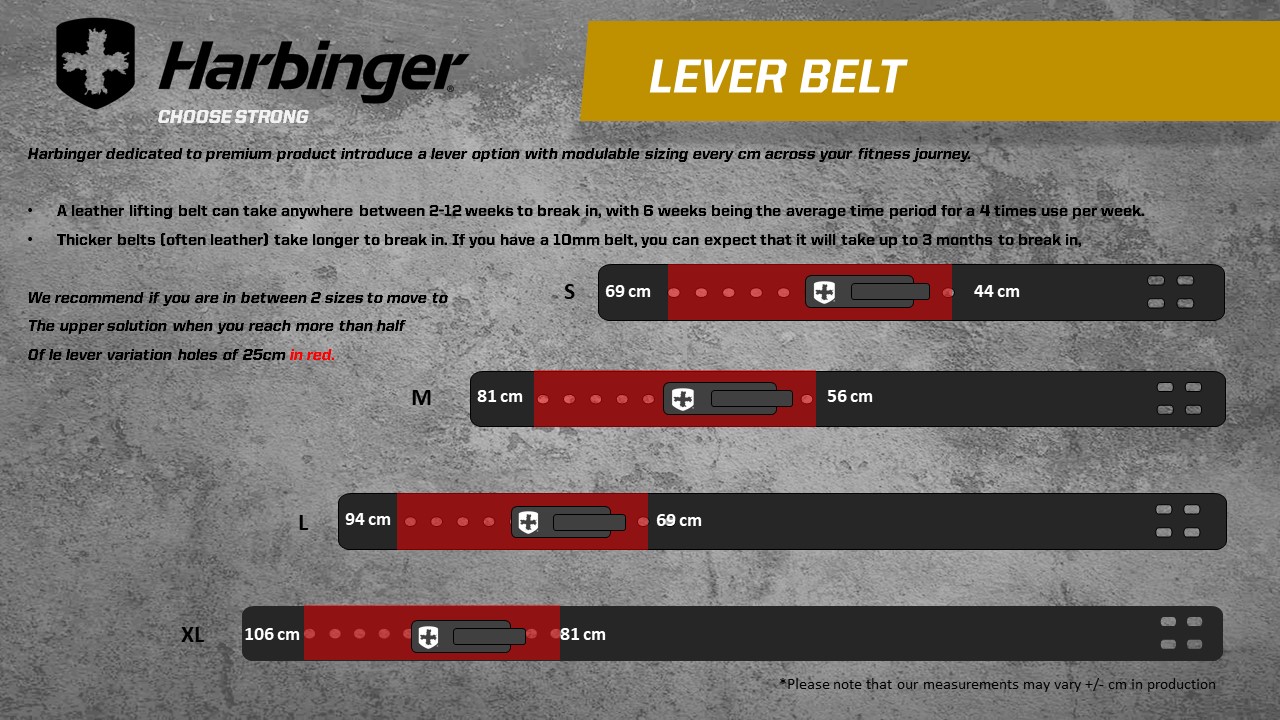 חגורת הרמה מקצועית עם אבזם מתכת – Harbinger Lever Belt 10mm